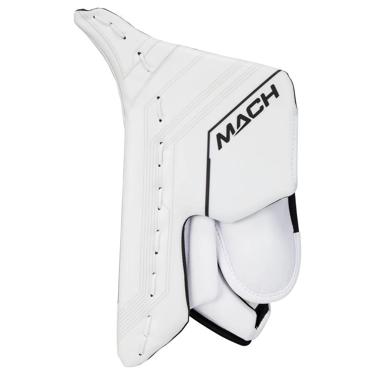 Internally, the board of the Mach will feature an improved HD foam topped with Bauer’s CURV composite material to punch rebounds hard away while offering unparalleled directional control. Flipping around to the back, the blocker features a Connekt+ palm liner designed to offer premium grip on the stick.