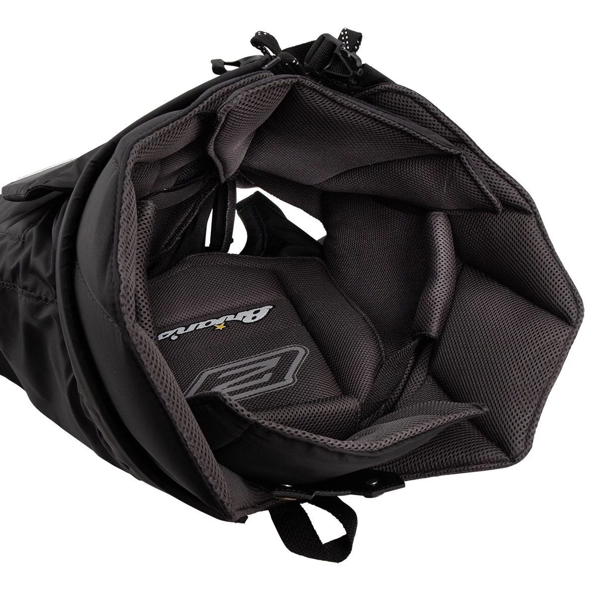 Moving on to the inside of the Optik 2 Pro Intermediate Pants, the entire interior is design with Brian’s lightweight airknit design that helps cut down the overall weight of the Optik 2 pants. Next, you can the internal belt system that allows a goaltender to find their exact preferred fit with quick adjustments on the belt. Down in the legs, removable thigh cushion pads are in place to offer more protection or can be easily removed for further mobility.