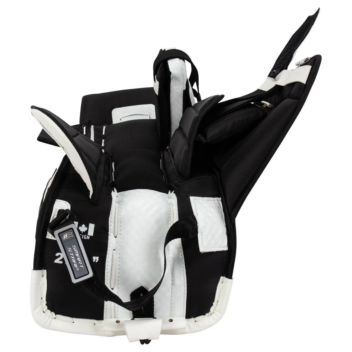Down at the boot, Brian’s has continued the use of their smart strap system. The Smart Boot Strap is made with high-grade nylon that is commonly used in seat belts to provide the durability the goaltender needs in a boot strap. This strap is fully adjustable for the goaltender to help find their most effective fit and feel. Capping off the strapping system is the Smart toe set up that features an elastic build to provide consistent tension that allows the goaltender to get effective pushes.