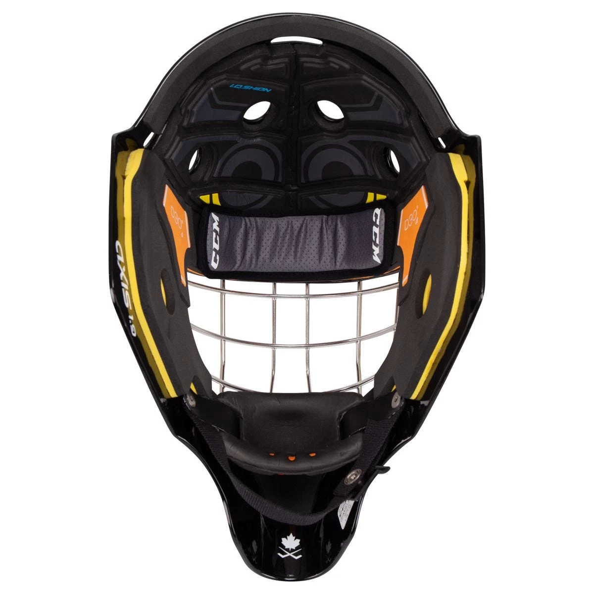 Brand new for 2020, CCM has unleashed the next iteration to the CCM goalie mask line. The CCM Axis A1.9 Senior Certified Straight Bar Goalie Mask is an NHL inspired shell and is packed with new features and materials aimed to improve comfort and more importantly, protection.