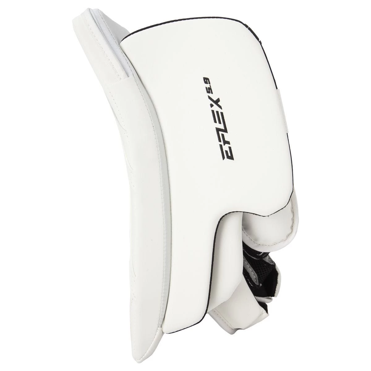 More on the build of the E5.9, CCM has used a laminated dual-density foam with a PE board which creates a thinner profile design, built for solid rebound control to help direct pucks safely into corners. Around the sidewall, a stiff sidewall creates great protection from reaching saves while allowing for good range of motion.