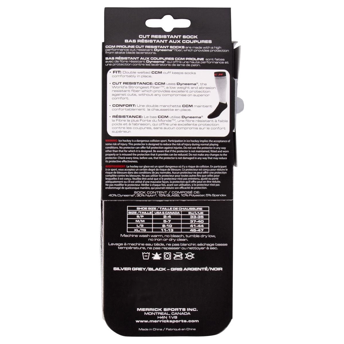 The CCM Proline Level 5 Cut Resistant Hockey Socks have been specifically designed to give players great resistance to cut-type impacts. This is thanks to the Dyneema fiber, the world’s strongest fiber, that the socks are constructed out of. This fiber is lightweight, breathable, and cut-resistant, all while remaining incredibly comfortable!