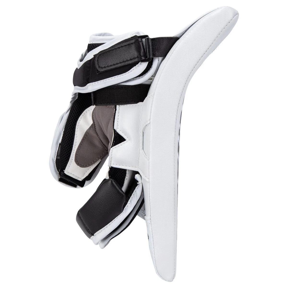 Finally, on the palm of the V9, a new palm design with changes in specific areas to provide the goalie with the best fit and comfort possible. This palm is made up of VX suede which gives the goaltender more control and grip over their stick to make key plays.
