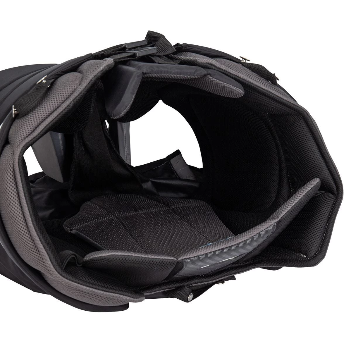 Down at the thighs, a new full wrap around thigh guard will make sure the entire goalie’s leg is protected, specifically for the high impact zones. You will also notice the thigh cradle technology that will help increase thigh stability which, helps the thighs stay in place when moving around the crease and providing a reliable blocking surface. Finally, the internals are made of aero-spacer mesh lining for comfort and ventilation.