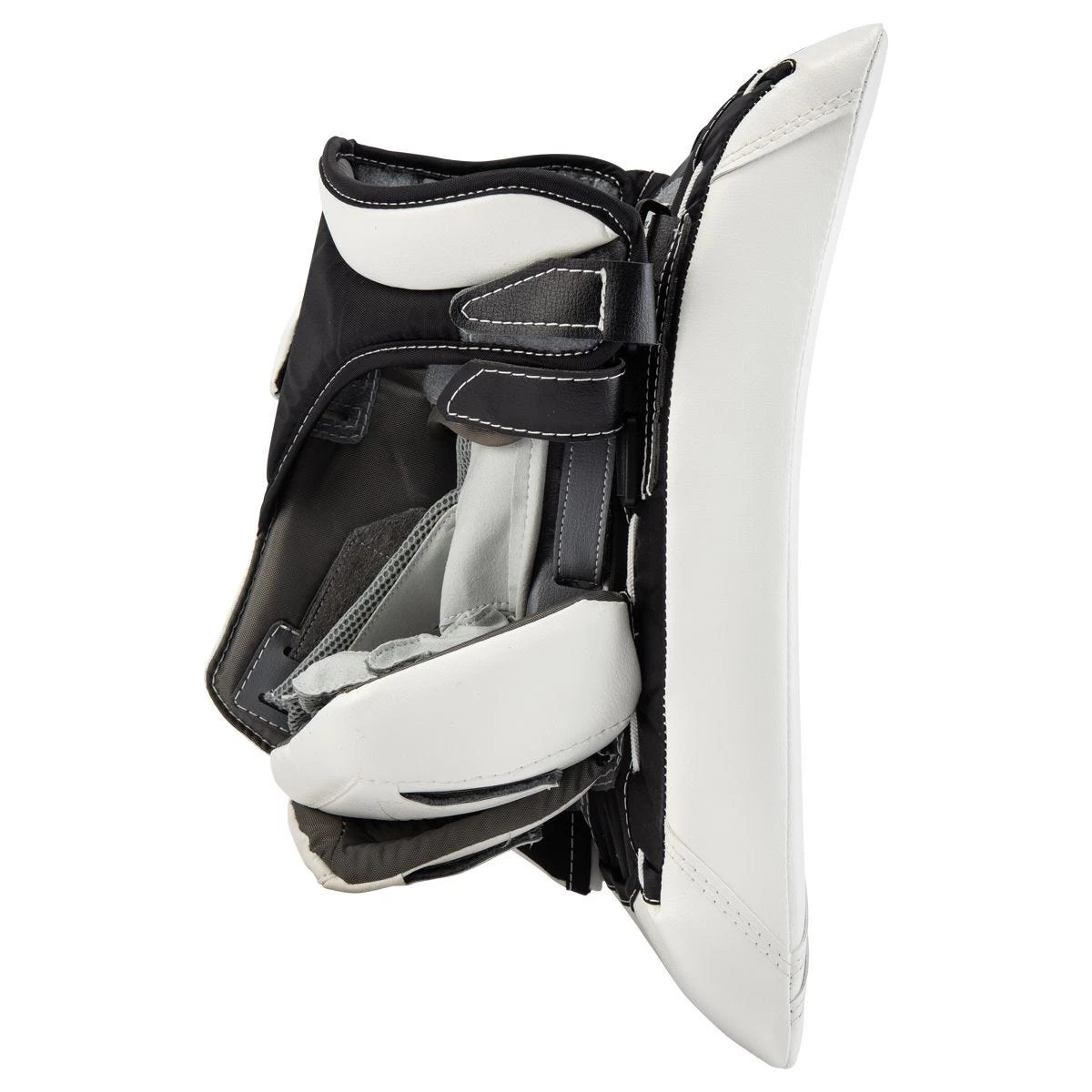 Flipping around, the palm of the Ritual G5 Pro is fully removable and can be adjust to a High, Medium, or Low setting or completely replaced with an Intermediate, Medium, Large or XL liner. Stock, the G5 Pro Senior comes with a Senior Large removable palm. Every piece stemming off the blocker palm is highly adjustable with many attachment points for the goaltender to find the exact fit and feel they want out of the G5. Internally, the backhand foam is tapered down toward the fingers of the blocker to help angle to nose down and create a more natural hand position for the goaltender to easily reach toward pucks and present the blocker to the shooter.